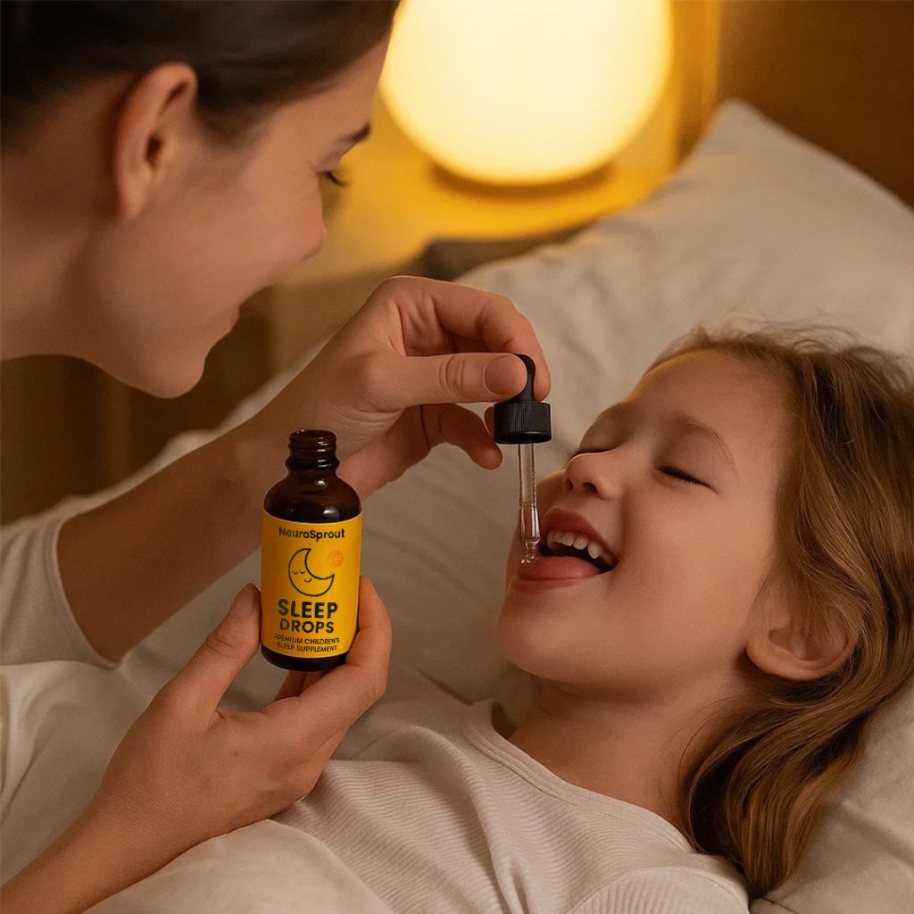 Tired of 2-hour bedtime battles with your exhausted child? NeuroSprout Sleep Drops contains 6 powerful nutrients that most kids' brains are missing - the same compounds that help adults fall asleep naturally. This berry-flavored liquid absorbs in minutes and works with your child's developing brain chemistry (not against it) to create the calm, peaceful bedtimes you've been dreaming of. No hormones, no grogginess, no fights - just happy kids who actually want to go to sleep.