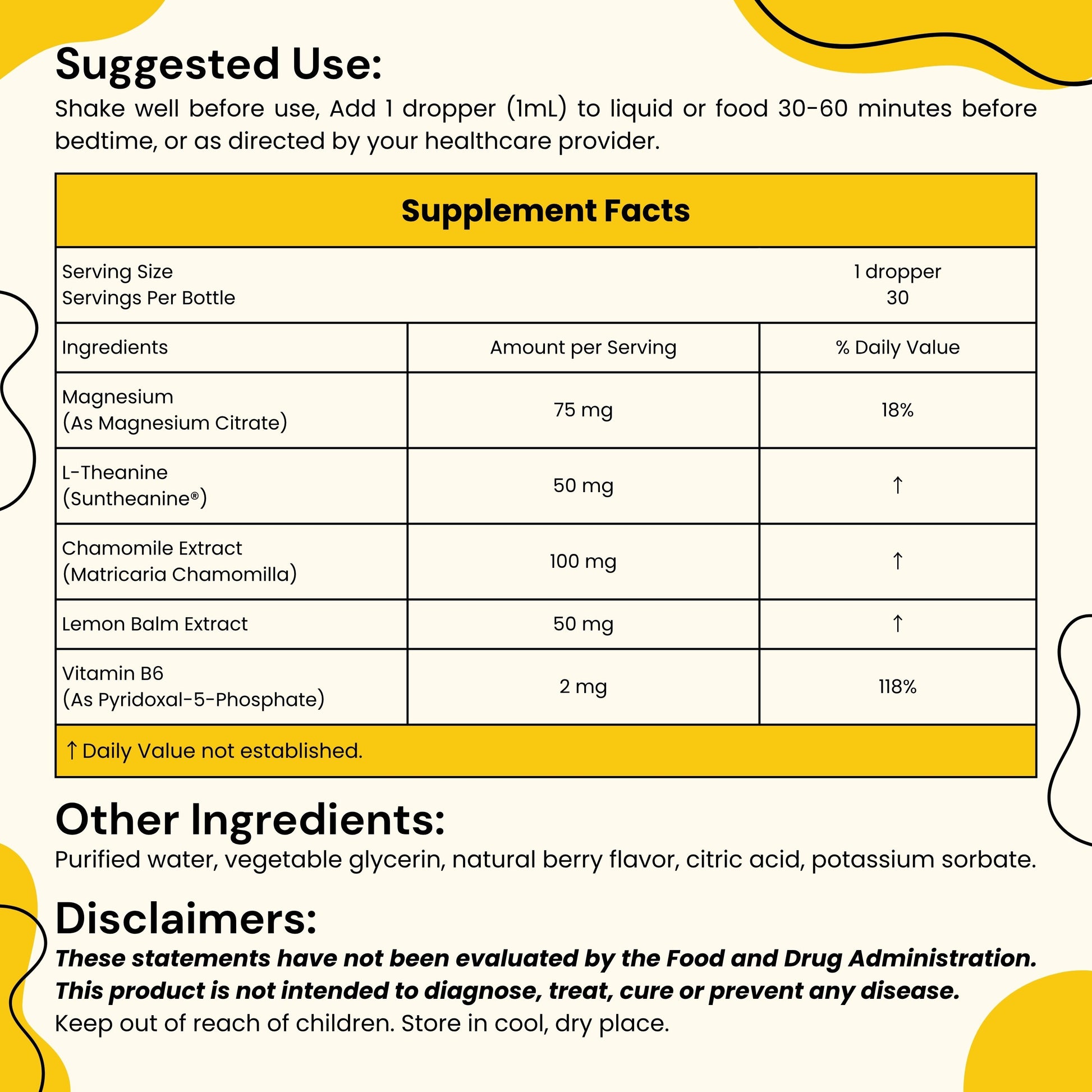 For best results, use 1 dropper nightly 30-60 minutes before bedtime for at least 2-3 weeks.